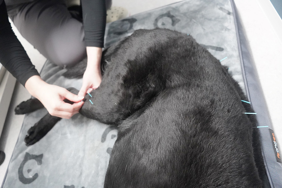 動物の体の状態に合わせ、さまざまな長さ・太さの鍼を使い、体表のツボを刺激することで本来の治癒力を引き出します。